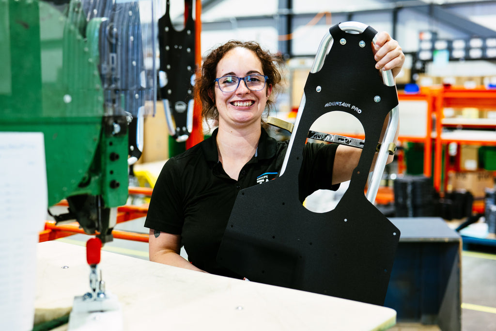 La qualité de fabrication de nos produits, notre main-d'œuvre expérimentée et nos équipements spécialisés sont la clé de notre succès! Nous investissons chaque année en recherche et développement, ce qui nous permet d'améliorer constamment nos raquettes selon les besoins évolutifs des raquetteurs. Notre raquette à neige S-Line, celles à ailes de traction (WTD), nos cadres Arcatech et le système de pivot DS, tous brevetés, sont le fruit de ces efforts.